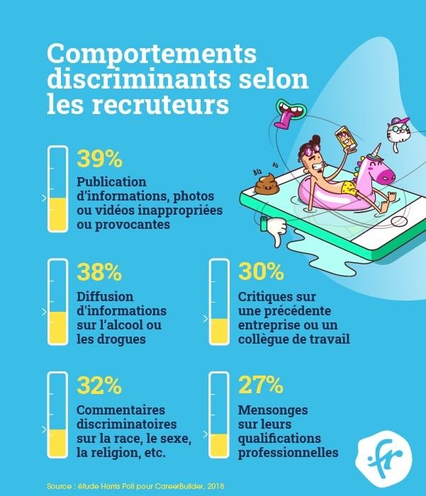 Les – : La prise de parole sur les réseaux sociaux comporte toujours des risques. Soigner son e-réputation et distinguer vie pro et vie perso sont essentiels. Surtout lorsque l’on sait que la publication de photos inappropriées sur les réseaux sociaux peut envoyer votre candidature à la poubelle, beaucoup plus qu’une qualification professionnelle gonflée !